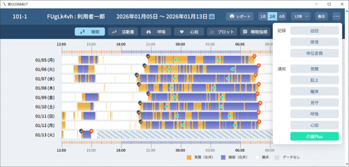 これにより、介護スタッフは根拠に基づいた効率的な巡回やケアの検討が行えるようになり、介護サービスの質向上と利用者の安心につなげることができます。